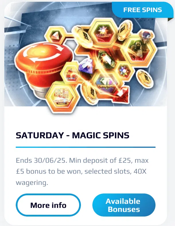 NetBet Magic Spins sees you able to receive free spins when you opt in and deposit £25 and there is a max £5 bonus to be won on selected slots with 40x wagering. When you use the bonus code 25 magic spins, you will receive 35 free spins.